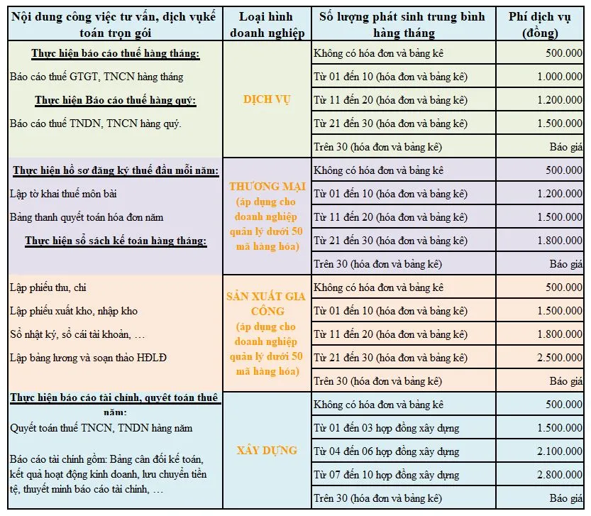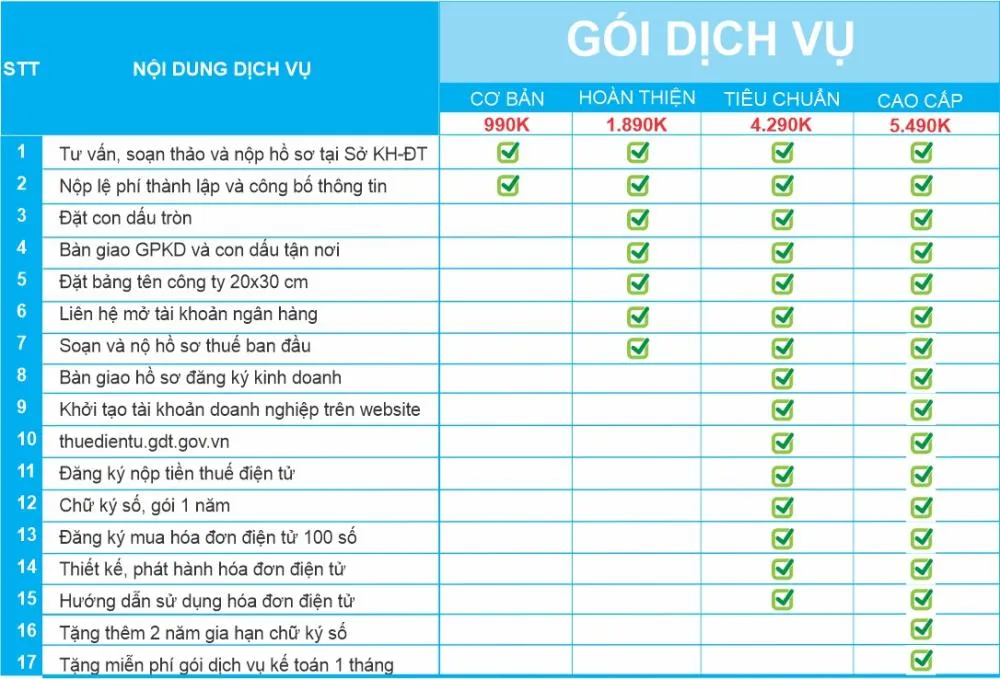 Nếu bạn sử dụng thêm dịch vụ sau thành lập thì trọn gói là 1.500.000 đồng